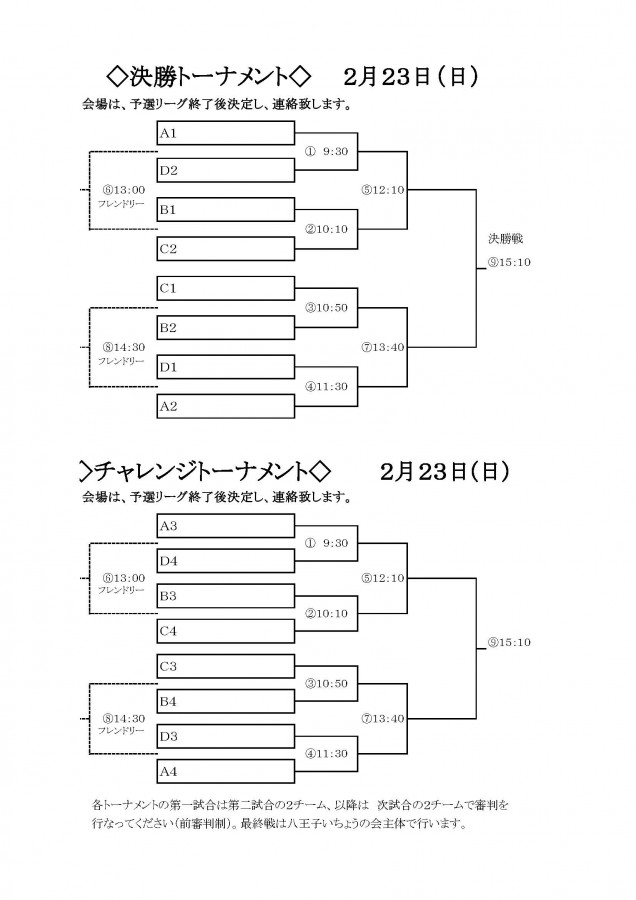 1/25 U10リーグ及び桂川リーグタイムスケジュールを更新しました。