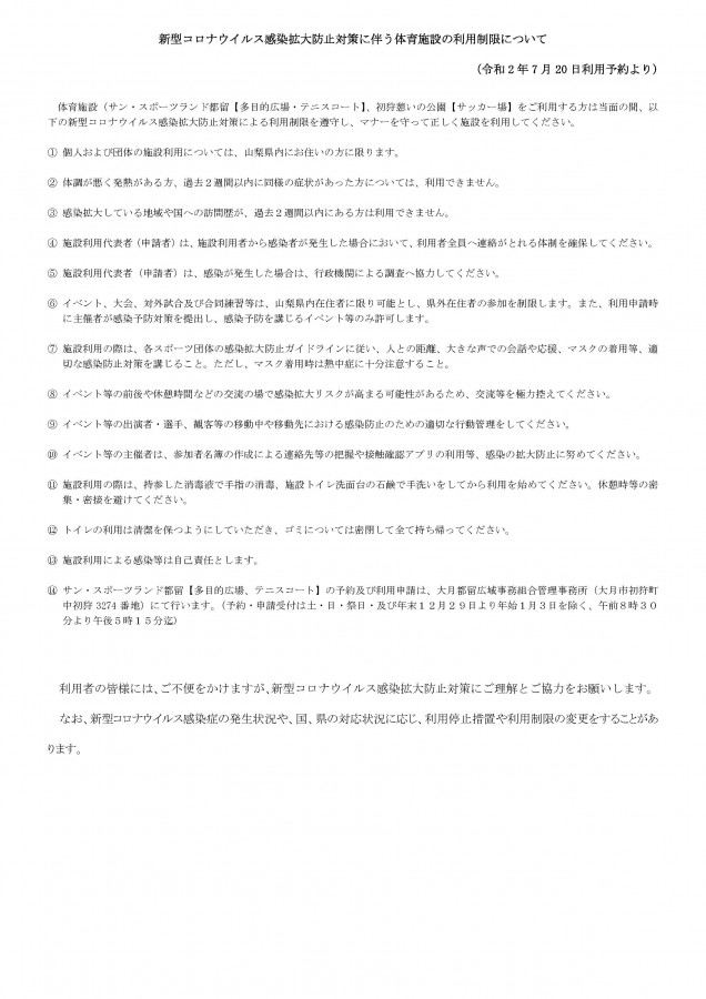 【重要】新型コロナウイルス感染拡大防止対策に伴う体育施設利用制限の緩和について