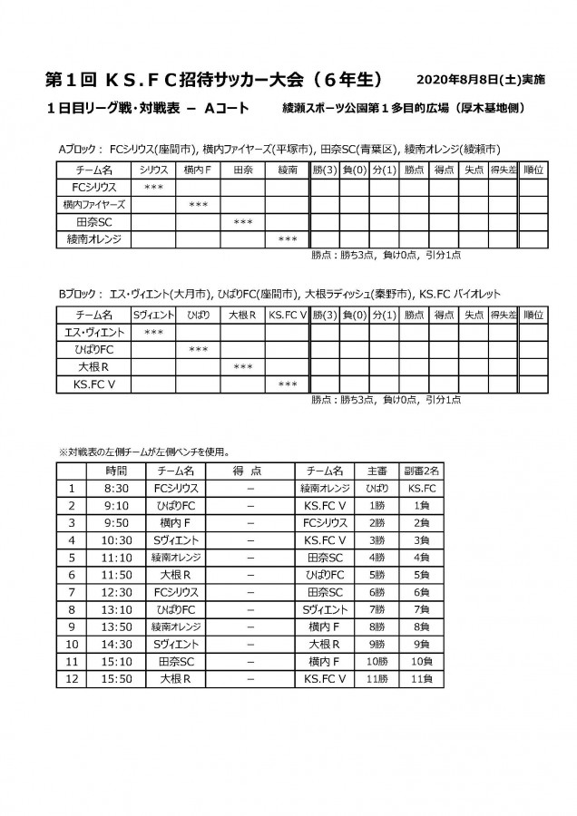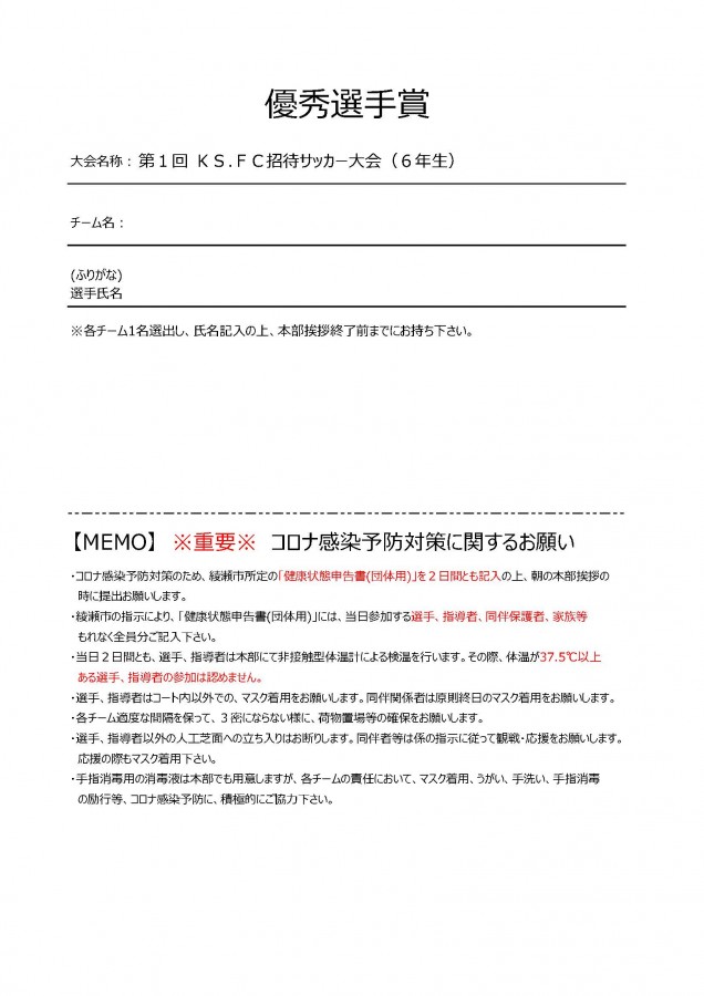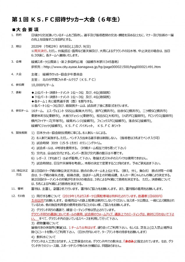 2020 KS.FC招待要項を更新しました。
