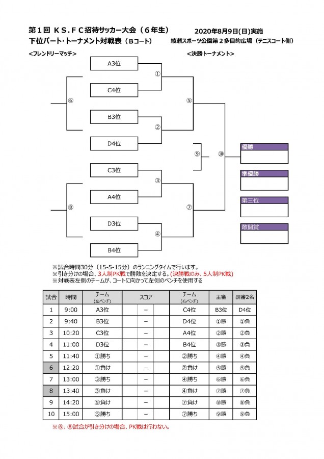 7/26 トレーニングマッチタイムスケジュールを更新しました。