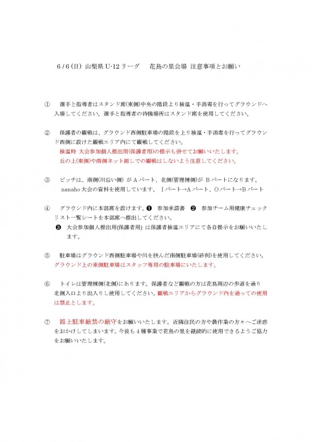 6/6 県U12リーグ【4節】会場案内を更新しました。